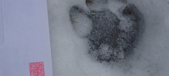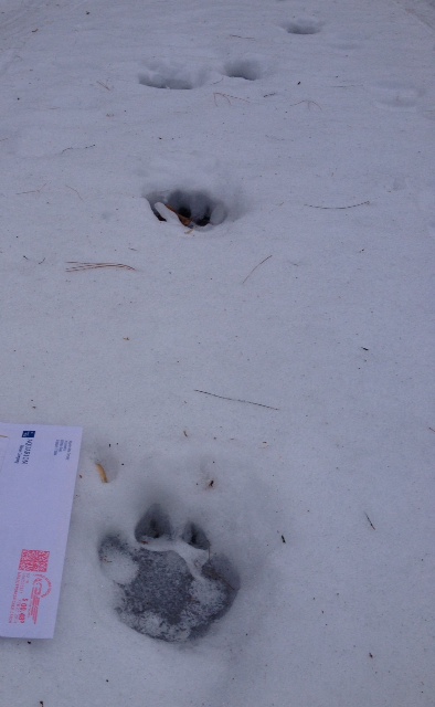 Look what I found in my unplowed driveway. No, not the utility bill. I put that there so you could see that this print is at least half a foot long. I guess it’s a bear. Or a smallish bigfoot?