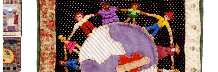 I decided to illustrate Long Live Earth with fabric scraps because quilting is an age old form of recycling. For whatever reason I tended to think of quilting as mainly an American labor with images coming to mind of bonneted pioneer women, log cabins and Pa Ingalls in his red long johns. In reality this couldn’t be further from the truth. The earliest known quilt dates back to the Pharaoh of the Egyptian First Dynasty, about 3400 B.C.
